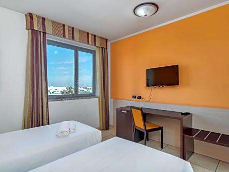 Hotel Record is a modern establishment set in the new business district of Settimo Torinese, just outside Turin and a few yards from the A4 motorway exit. Take advantage of the free car park and free internet. Your room at the B&B HOTEL Settimo Torinese has a contemporary design and includes free internet connection. All air conditioned, rooms come with a flat-screen TV with satellite and pay-per-view channels, and a mini-bar. The bathroom is fitted with a shower, with a hairdryer and free toiletries provided. Suites offer a spa bath. The hotel features a fully equipped conference center with a maximum capacity of 180. Start your day with a buffet breakfast. At dinner, you can enjoy an à la carte service at the elegant restaurant. For your relax, you can enjoy the on-site fitness facilities and the sun terrace equipped with a hot tub.