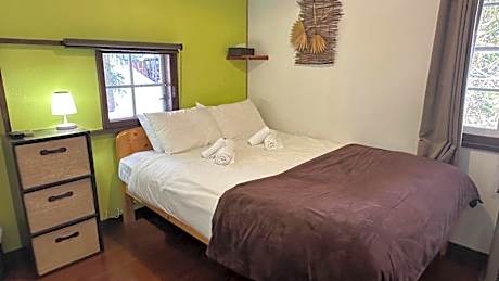 This family room features a shared bathroom, a wardrobe and garden views. The unit offers 6 beds.