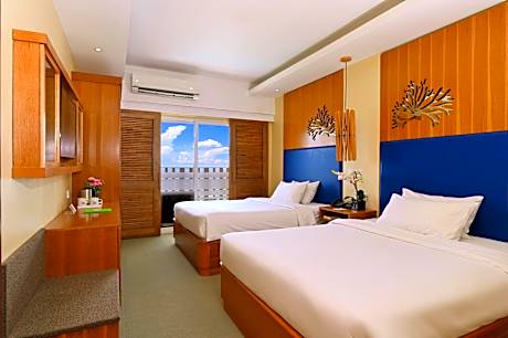 Be Resorts Mactan offers top-notch services and amenities, ensuring guests experience utmost comfort.Maintain seamless communication using the complimentary Wi-Fi at resort. Effortlessly arrange transportation to and from the airport using the resort's airport transfer services. Discovering Cebu becomes even more accessible, thanks to the shuttle amenities provided at the resort. For visitors traveling by automobile, complimentary parking is available.During your stay at this fantastic resort, the attentive front desk personnel can provide you with a range of amenities such as concierge service, luggage storage and safety deposit boxes.For extended visits or whenever required, the laundry service ensures your preferred travel garments remain fresh and accessible. During leisurely days and evenings, on-site amenities such as room service enable you to fully enjoy your accommodation.For visitors wishing to smoke, designated smoking zones can be found. At Be Resorts Mactan, every guestroom is provided with convenient amenities and fittings to ensure a comfortable stay.Enhance your experience at resort with the knowledge that certain rooms are equipped with linen service and air conditioning for your convenience. In select rooms within the resort, a refrigerator, bottled water, a coffee or tea maker, instant coffee, instant tea and mini bar is available to cater to your requirements when desired.In the resort, certain guest bathrooms come equipped with essential bathroom amenities, such as a hair dryer, toiletries and bathrobes, ensuring a comfortable stay for guests. Begin your day with a scrumptious on-site breakfast available each morning at Be Resorts Mactan.At the resort, an assortment of easily accessible and delicious meal choices are available to satisfy your appetite whenever it strikes.Create unforgettable moments with your fellow voyagers just steps away, at resort's karaoke rooms and bar, for a delightful evening together. Be Resorts Mactan provides a superb assortment of leisure amenities for guests to enjoy.During your stay, don't forget to allocate some moments to experience the readily available shoreline.Be sure to drop by the pool at resort at least once during your stay.Discover the fitness amenities at resort to maintain your health and strength during your getaway.