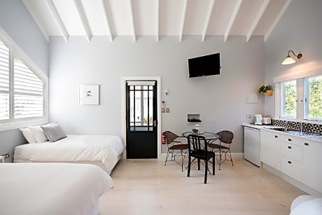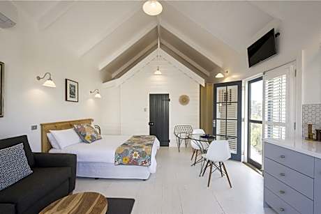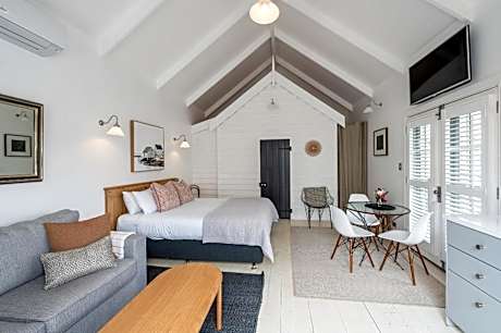 Ubicado en el centro de la exuberante península de Fleurieu, Beach Huts Middleton ofrece icónicos alojamientos boutique de lujo de 4 estrellas con temática costera, con un ambiente rural rodeado de jardines junto al mar. A solo 5 minutos a pie de la playa de Middleton, este establecimiento ofrece alojamiento independiente con wifi gratis, patio o terraza privados y una botella de champán de cortesía a la llegada. Los huéspedes disfrutan de una pista de tenis, una zona de barbacoa y un restaurante galardonado. Middleton Beach Huts se encuentra a 5 minutos en coche del club de golf South Lakes y del aeropuerto de Goolwa, punto de partida de numerosos vuelos panorámicos. El Centro Ballenero de Australia Meridional está a 10 minutos en coche. Todos los chalets cuentan con aire acondicionado y una cocina americana o cocina con microondas y nevera. Todos los chalets incluyen Smart TV. Algunos también ofrecen bañera de hidromasaje o sofá cama. Los huéspedes pueden relajarse en los jardines o disfrutar de una comida al aire libre en la zona de barbacoa. El establecimiento también ofrece consigna de equipaje y aparcamiento gratuito. El restaurante Blues, con servicio de comedor tanto en el interior como al aire libre, se especializa en mariscos, carnes y venado. También ofrece una amplia gama de vinos y cervezas locales.