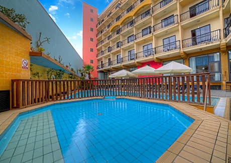 Located on St. Paul's Bay, the Bella Vista is a 10-minutes walk from central Qawra, and 15 minutes from Bugibba Bus Station. The hotel offers indoor and outdoor swimming pools and a rooftop terrace with hot tub. The spacious rooms offer a balcony with views of the countryside or the swimming pool. All rooms come with TV, private bathroom, fan, hair dryer, Air conditioning, mini cooler, safe, Wi-Fi and a kettle. Hotel Bella Vista includes a gym and sauna. Historic cars are on display in the lobby. The beauty center is available for a wide choice of treatments and massages. The restaurant serves Mediterranean dishes at breakfast, lunch, and dinner. All meals are buffet style. The lounge bar hosts live music and film screenings. Staff provide lots of useful tourist information for visits around Malta.