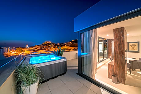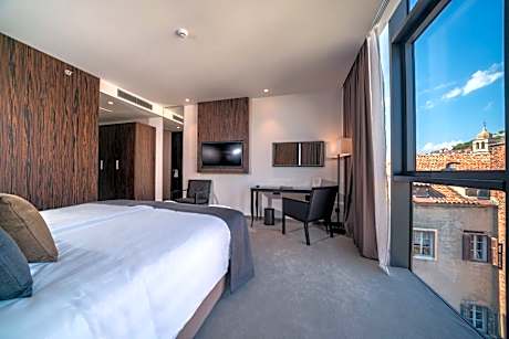 Enjoying a privileged seafront location in central Šibenik, Bellevue Superior City Hotel offers modernly furnished rooms, each with splendid views of the sea or the city. The hotel is set a short distance from attractions such as the Church of St. Jacob, while fortresses of Barone and St. Michael are both within 0.6 mi. Filled with abundant natural light, the rooms and suites at the Bellevue include a private bathroom with a shower, free toiletries and a hair dryer. Standard amenities include air conditioning, flat-screen TV, desk, and mini-bar, as well as a safe. Free WiFi access is available throughout the property. Buffet breakfast is available every morning, and includes continental and vegetarian options. The on-site spa offer includes a mini swimming pool, Finnish and Turkish saunas, as well as a fitness center. You can relax with a drink in the lobby bar and rent a bike at the reception to explore the city. The locally popular Banj Beach is about 0.6 mi away. The nearest airport is Split Airport, 31 mi from the Superior City Hotel Bellevue. Airport transfers can be organized upon previous request and at a surcharge.