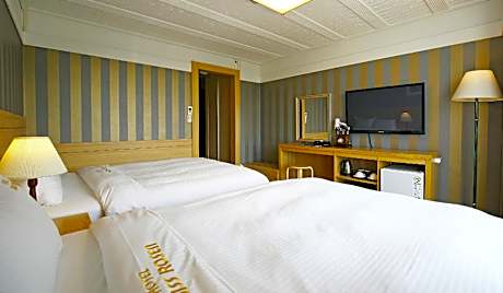 Experience an abundance of unparalleled facilities and features at Benikea Swiss Rosen Hotel.Share your photos and respond to emails at your convenience, thanks to the free Wi-Fi internet access offered by hotel. Taxi and car hire offerings at the hotel simplify arranging your excursions, explorations, and additional activities in Gyeongju-si.Visitors can take advantage of complimentary parking directly at the hotel. Reception services such as concierge service, luggage storage and safety deposit boxes are available to accommodate your requirements. Should you desire access to the top entertainment in the city, assistance can be provided by the hotel's tours.Traveling with minimal luggage is achievable at Benikea Swiss Rosen Hotel due to the hotel's laundromat ensuring your garments stay fresh.Room amenities like room service and daily housekeeping contribute to making a perfect selection for your stay. Minor items you neglected to bring won't cause major issues! Simply visit convenience stores to acquire what's necessary.The hotel maintains a completely smoke-free zone, providing a breathable atmosphere. Each accommodation at Benikea Swiss Rosen Hotel is thoughtfully created and adorned to provide visitors with a comfortable, home-like atmosphere.In certain rooms, the hotel offers linen service and blackout curtains for guest convenience and satisfaction. At Benikea Swiss Rosen Hotel, the uniquely tailored rooms provide a configuration choice resembling a balcony or terrace. In select rooms, guests at the hotel can enjoy top-notch in-room entertainment with television, in-room video streaming and cable TV available for their convenience. Rest assured, in a few chosen rooms, you will find the convenience of a refrigerator, bottled water, a coffee or tea maker, instant coffee and instant tea at your disposal.Maintain your cleanliness and comfort using a hair dryer, toiletries and bathrobes available in select guest restrooms. Embark on your holiday experience in the most ideal manner. Commence each morning of your visit with an on-site breakfast. Experience the delight of a fresh morning by savoring excellent coffee at the cafe situated within hotel.Should you prefer not to venture out for a meal, the enticing culinary choices at hotel are always available for your satisfaction.Experience an unforgettable evening with your fellow travelers just a short distance away, at hotel's bar.Throughout the day and evening, grab a bite to eat from hotel's self-service vending machines whenever you please.Indulge in the numerous pursuits available at Benikea Swiss Rosen Hotel. Each day at hotel, immerse yourself in the invigorating waters of the pool, perfect for a rejuvenating plunge or a series of revitalizing laps. For individuals who don't want to skip their exercise routine, visiting the hotel fitness center ensures you maintain your vitality and wellness.