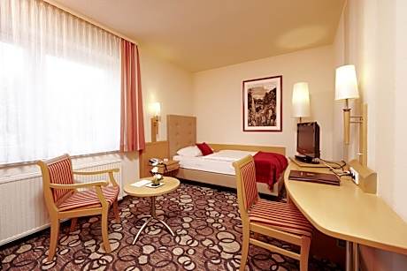 This air-conditioned single room features a shower, WC, hairdryer, satellite TV, telephone, mini-bar, safe and some rooms offer a view of the mountains.