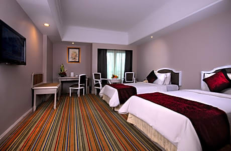 En el Berjaya Waterfront Hotel, un servicio excepcional y comodidades de primera categoría crean una experiencia memorable para nuestros huéspedes. El hotel dispone de acceso gratuito a internet para que se mantenga conectado durante su visita. Organice sus viajes desde y hacia el aeropuerto con el cómodo servicio de transporte del hotel. El alquiler de coches y el servicio de transporte del hotel simplifican la organización de sus excursiones, exploraciones y actividades adicionales en Johor Bahru. Disponemos de aparcamiento gratuito. Reciba la asistencia que necesite en recepción, con servicios como conserjería, consigna de equipaje y cajas de seguridad. El servicio de venta de entradas y excursiones del hotel también le ayudará a reservar entradas y entretenimiento y aventuras. Luzca siempre su mejor atuendo con el servicio de tintorería y lavandería del Berjaya Waterfront Hotel. ¿Desea relajarse? Las comodidades de la habitación, como el servicio de habitaciones y la limpieza diaria, le permiten aprovechar al máximo su tiempo en la habitación. Además, puede adquirir artículos básicos de viaje y otros artículos en las tiendas de conveniencia sin salir del Berjaya Waterfront Hotel. Las habitaciones están equipadas con todas las comodidades necesarias para un sueño reparador. Algunas habitaciones cuentan con cortinas opacas y aire acondicionado para garantizar su comodidad. Algunas habitaciones seleccionadas están equipadas con periódico diario, televisión, transmisión de video en la habitación y televisión por cable para su disfrute. En algunas habitaciones, el hotel ofrece a los visitantes acceso a refrigerador, agua embotellada, cafetera o tetera, café instantáneo y minibar. El Berjaya Waterfront Hotel ofrece secador de pelo, artículos de tocador, albornoces y toallas en los baños de algunas habitaciones. Una ventaja adicional para los huéspedes es el salón ejecutivo, que ofrece un ambiente acogedor y excelentemente amueblado para relajarse. Un delicioso desayuno es la manera perfecta de comenzar el día, y en el Berjaya Waterfront Hotel, siempre puede disfrutar de una deliciosa comida en el hotel. ¡Permita que su viaje sea libre de hambre! Los restaurantes del hotel ofrecen opciones de comida deliciosas y accesibles. Una noche en el bar del hotel puede ser tan placentera como salir con sus compañeros de viaje. En el Berjaya Waterfront Hotel, los huéspedes pueden disfrutar de las encantadoras instalaciones recreativas disponibles para su entretenimiento. Termine sus días en completa tranquilidad visitando el salón de belleza y el baño de vapor para una relajación total. En el Berjaya Waterfront Hotel, una amplia gama de servicios garantiza una experiencia gratificante durante su estancia. Haga que sus vacaciones sean realmente memorables con un refrescante chapuzón en la piscina. En el Berjaya Waterfront Hotel, el bar junto a la piscina es una excelente opción para disfrutar de largas horas en traje de baño. En el gimnasio del hotel, puede continuar con su rutina diaria de ejercicios o simplemente aliviar el jet lag con unas buenas dosis de ejercicio.