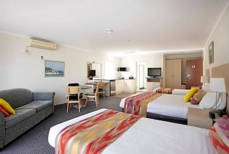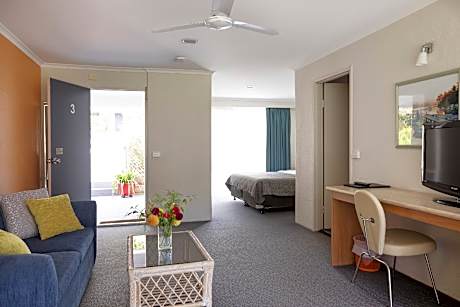 Fairway Motor Inn offers spacious self-contained units with free WiFi, an outdoor swimming pool and a BBQ area. The nearest beach is just 1640 feet away. Fairway Motor Inn is only 3 minutes’ drive from Pambula and Merimbula town centers. All rooms include a kitchenette with microwave and refrigerator, plus a dining table and sofa bed. A 32-inch flat-screen TV, air conditioning and heating are also included. Guests have access to a full-size tennis court with free use of all tennis equipment. There is also a guest laundry and free on-site car parking is provided. A continental breakfast pack can be arrange for an additional charge. Pambula Merimbula Golf Club and Wheelers Seafood Restaurant are only 3 minutes’ walk away. Guests can charge their meals at each of these restaurants back to their room. Fairway Motor Inn is a Multi Award Winning Motel in South Coast Tourism Awards