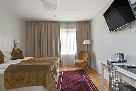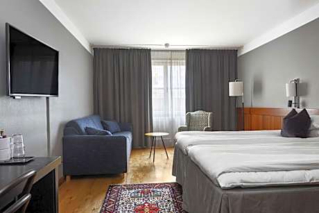 Best Western Gustaf Wasa Hotel is located in central Borlänge, just 164 feet from the Central Station. It offers rooms with free Wi-Fi access and free private parking. All rooms at Gustaf Wasa have flat-screen TV with cable channels and a work desk. Some rooms include a sofa. Broken Dreams Restaurant serves American-Mexican dishes. A buffet breakfast is served every day. Drinks are available in the bar. Guests can also work out in the gym and relax in the garden or on the terrace. Sveatorget Square is a 10-minute walk away. The Kupolen Shopping Area is less than 0.6 mi from the hotel.