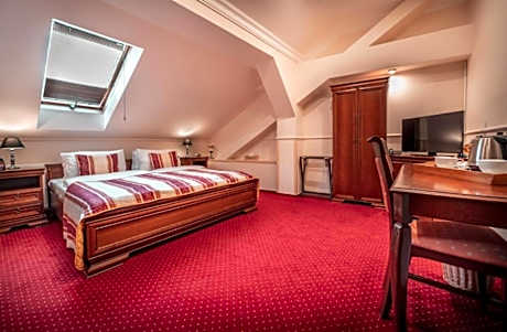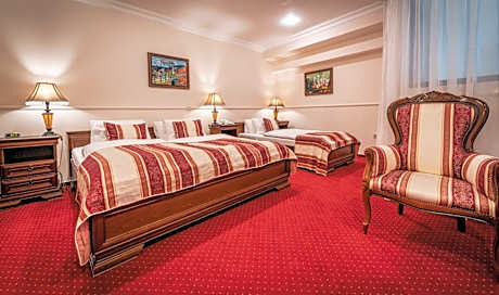Hotel Capital is located in the center of Nitra town and offers accommodations in air-conditioned rooms and suites decorated in a rustic style. Wellness area features a pool, a hot tub, a finnish sauna and massages are available as well. All units at Hotel Capital are nonsmoking and feature free WiFi and a private bathroom with a shower or a bath tub. Laundry and ironing facilities are offered for an extra charge. Free private parking is possible on site.