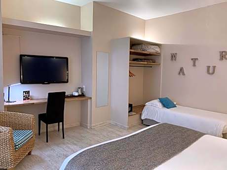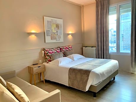 This hotel is located in Fougères, right in the heart of the ancient citadel of Duché de Bretagne. The hotel offers free Wi-Fi internet access and a mixture of traditional stone walls and modern décor. The rooms in the stone building are individually-decorated and feature a flat-screen TV with satellite channels. They are complete with a private bathroom. A buffet breakfast with regional specialties is served every morning at the Best Western Hôtel Des Voyageurs. The hotel is in close proximity to the castle, the belfry, restaurants and free parking facilities, 20 minutes from Mont St Michel and 1 hour from both the beaches of Saint-Malo and the World War Two Landing Beaches.