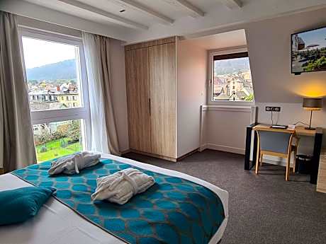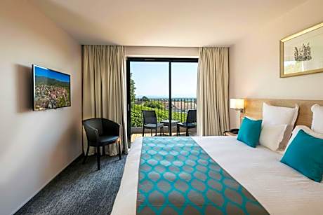 Surrounded by vineyards, the Best Western Hotel Le Schoenenbourg is opposite the ramparts of the medieval village of Riquewihr. This eco-friendly hotel features a complimentary spa area with an indoor pool, saunas and hammam as well as a seasonal outdoor pool. Riquewihr Christmas Market is 558 feet away. Each room is decorated in neutral colors. The air-conditioned rooms are equipped with free WiFi access, a flat-screen TV with satellite channels and tea and coffee making facilities. Please note that the restaurant is open. Additional facilities at the Best Western include a bar. Guests can enjoy a daily buffet breakfast in the dining area or on the outdoor terrace overlooking the garden. Hotel Le Schoenenbourg is 8.1 mi from Colmar, 17 mi from the border of Germany and 53 minutes from Strasbourg. Guests can go hiking in the Réserve Naturelle du Massif du Ventron.