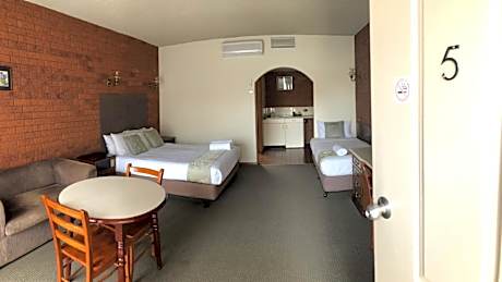 Featuring a swimming pool, Meramie Motor Inn is just 0.6 mi from the Albury Botanical Gardens. Free WiFi and HUGE 65" Smart TV is standard in all studios, with 75" Massive Screens in our 2 Apartments. Meramie Motor Inn is 5 minutes’ drive from the Albury Regional Museum and Albury Railway Station. Albury Airport is a 10-minute drive away. All air-conditioned studios have a kitchenette with a microwave, refrigerator and tea and coffee facilities. Each studio has a work desk and a bathroom with a hairdryer and guest toiletries. A wheelchair accessible room is available. Free parking is available on site, strictly One (1) vehicle per room only. Parking of small campervans / caravans / trailers is also available upon request. Please notify us at time of booking and please note our height restriction of 9.5 ft. On-street parking is almost always available for additional and larger vehicles including busses.