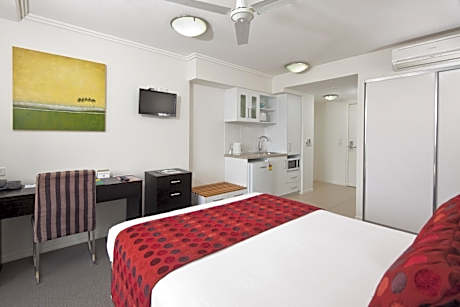Cairns Central Apartments es un apartotel de 4,5 estrellas ubicado en el corazón del distrito financiero de Cairns, frente al centro comercial Cairns Central. Todas las unidades ofrecen vistas al océano o al interior. Se encuentra a poca distancia a pie de atracciones populares como la Explanada, los Mercados Nocturnos, el Centro de Convenciones de Cairns, el Casino Reef y discotecas. Los huéspedes disfrutan de wifi, aparcamiento y servicio de televisión Foxtel gratuitos. Las opciones de alojamiento de lujo incluyen amplios estudios de una y dos habitaciones, elegantemente decorados, con cocina totalmente equipada (los estudios incluyen microondas y hervidor de agua) y un gran televisor de pantalla plana con canales por cable. Disponen de aire acondicionado individual, ventiladores de techo y aparcamiento cubierto seguro. Los huéspedes pueden relajarse en la piscina y el spa de la azotea y disfrutar de las impresionantes vistas, o utilizar el espacio para reuniones y conferencias, que incluye una sala de juntas ejecutiva. El mostrador de información turística del hotel puede proporcionar más información sobre la zona y las atracciones locales. Esta es una de las zonas favoritas de nuestros huéspedes en Cairns, según reseñas independientes.