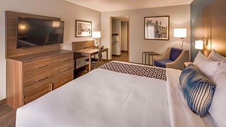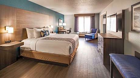 Located off Interstate 74, this hotel is less than 1 mile from from shopping at Market Place Mall. It features an indoor pool and pet-friendly guest rooms with free Wi-Fi. A flat-screen cable TV and a work desk are provided in all rooms at Best Western Plus Champaign/Urbana Inn. For convenience, the classic rooms feature a microwave, fridge and coffee machine. A daily hot breakfast is served at Best Western Plus Champaign/Urbana Inn. Guests can make use of the fitness center and 24-hour business center that are on site. This hotel is 3 miles away from The University of Illinois campus. Memorial Stadium, home of football’s Fighting Illini, can be reached in 13 minutes’ drive.