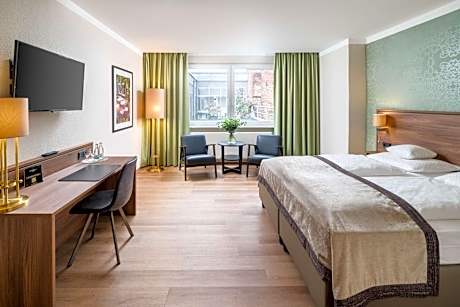 This hotel occupies an elegant Art Nouveau-style building and enjoys an excellent location in Erfurt’s city center, close to the main railway station and the popular Anger pedestrian zone. The 4-star Best Western Hotel Excelsior offers individually furnished guest rooms painted in warm pastel tones, which are spread over 4 floors. Start your day with the delicious breakfast buffet, which is included in your room price. The property also has a modern bar that offers cocktails and snacks. Excellent public transport links allow you to reach the city’s attractions quickly and easily.