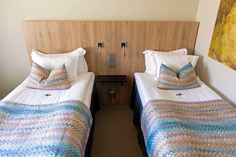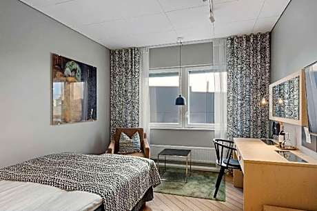 The single rooms feature a couch, work desk and a tiled bathroom with shower. Most rooms have a John Bauer theme with John Bauer art decor. Curtains and cushions give the room a luxurious touch with textile design from Missoni.