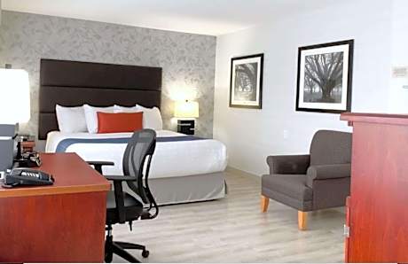The Abbotsford, British Columbia hotel is only 10 minutes' drive from Abbotsford Airport and features rooms with free WiFi. Featuring a cable TV, the modern rooms at Best Western Plus Regency Inn and Conference Center offer a coffee maker, microwave and refrigerator. Private bathrooms include free toiletries. Guests can enjoy a daily complimentary breakfast buffet which includes items like eggs, bacon, pancakes, French Toast, breakfast sandwiches, coffee and tea. A gym and a business center are provided on site for guests’ convenience. Laundry facilities are also available. ABC Country Restaurant, located on-site, is a full-service American restaurant. It is open for breakfast, lunch and dinner and provides a casual atmosphere. Castle Fun Park is 6.2 mi away and Abbotsford Entertainment & Sports Center is just 5 minutes' drive away.