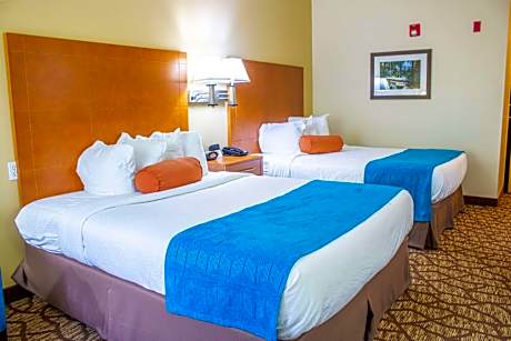 This Richmond Hill hotel offers a saltwater indoor pool, free 24-hour premium coffee bar, and free WiFi. The Bamboo Farm & Coastal Gardens are 6 miles away, and guests can enjoy a free daily hot breakfast. Breakfast is served buffet-style and the menu includes over 40 items, including peaches, eggs, and pancakes. Belgian waffles and French toast with sugar-free sirup are also provided. Best Western Plus Richmond Hill Inn features a microwave and a refrigerator in every guest room. Other in-room amenities include cable TV with HBO. A nightly social hour is provided in the lobby for all guests at the Richmond Hill Inn Best Western Plus. Cookies and nachos are available in the evening. Lemonade and ice cream (room service) are offered 24 hours. Recreational facilities at the Best Western Plus Richmond Hill Inn include a 24-hour fitness center, game room and barbecue patio. A 24-hour business center is available. A complimentary transfer service is offered with a tour purchase.