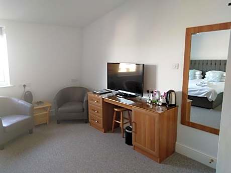 Providing free toiletries, this family room includes a private bathroom with a shower and a hairdryer. The family room provides a tea and coffee maker, a wardrobe, a carpeted floor, heating and a TV. The unit offers 2 beds.