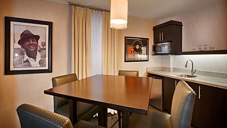 Offering free toiletries, this suite includes a private bathroom with a walk-in shower and a hairdryer. The fully equipped kitchenette features a refrigerator, a microwave and a tea and coffee maker. This wheelchair accessible suite has air conditioning, a seating area with a flat-screen TV and a roll-in shower. The unit has 2 beds.