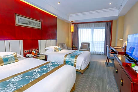 Located centrally in Yiwu International Trade City, it is only a 15-minute walk from the Phase 1-3 of the Trade City while Phase 4-5 is a 3-minute drive away. Free Wi-Fi is offered in the entire property The hotel is a 30-minute drive from Yiwu Airport and transfer service is available. It is an 8-minute drive from International Trade City Bus Terminal, 20-minute drive from Yiwu Railway Station and 40-minute drive from Hengdian World Studios. Fitted with soft carpeted flooring, rooms are equipped with a cable TV, a well-stocked mini-bar and a personal safe. Bathrooms come with either a bathtub or shower facilities. Guests can exercise at the fitness center, or enjoy a relaxing therapy at the Spa center. A well-equipped business center on the first floor is available for guests free of charge during the stay. Staff at front desk will help with luggage storage and ticketing service. Yiwu Ocean Hotel has a Hai Yi Ge Chinese Restaurant providing local cuisines while Carol Sea Western Restaurant serves a wide range of international flavors. Drinks can be enjoyed at the Lobby Bar.