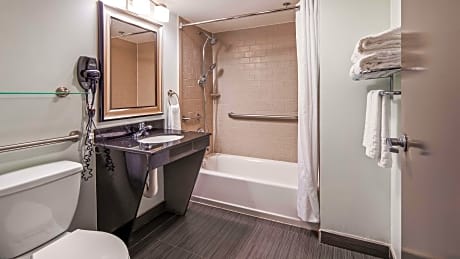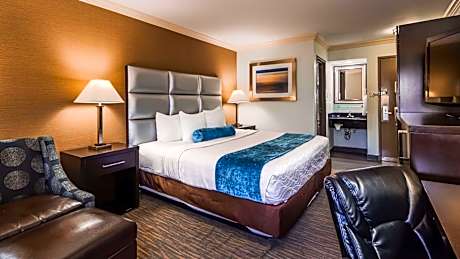 Located 20 miles from Central Houston, this hotel is a 10-minute drive from the Lyndon B. Johnson Space Center. It serves breakfast every morning and features an outdoor pool. Free Wi-Fi access and a flat-screen TV are available in every room at the Best Western Webster/NASA. They include a refrigerator and microwave and are furnished with a desk. The 24-hour front desk at Webster Best Western provides fax and copy services. Guests can get a snack or a drink from the on-site vending machines. The Baybrook Mall is 1 mile from the hotel. Nassau Bay Peninsula Wildlife Park is 6 miles away.