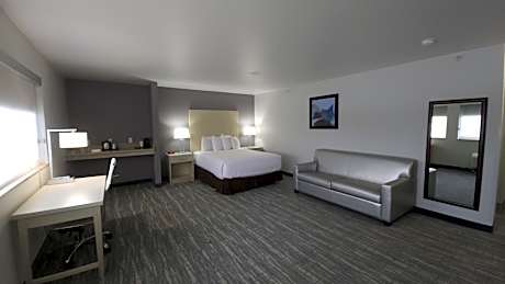 Located 8 miles away from Salt Lake City International Airport, this hotel features an indoor pool and hot tub. It serves a daily continental breakfast. All guest rooms offer free Wi-Fi. A flat-screen cable TV is offered in each air-conditioned guest room at West Valley Inn. All rooms include a coffee machine, ironing facilities and a hairdryer. Guests of Salt Lake City West West Valley Inn are greeted by a 24-hour reception. Guests have access to the fitness center. For convenience, a business center and a guest launderette are available. Clark Planetarium is 9 miles away from this hotel. The Utah State Capitol Building is 18 minutes’ drive away.