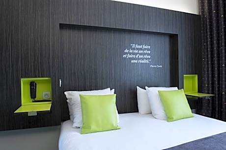 Welcome to our hotel Akena Nantes Atlantis Zénith in Saint-Herblain, west of Nantes. Located 3.7 mi from Nantes city center, this 3-star hotel is just 1969 feet from the Zénith. It features free Wi-Fi access and free newspapers at the reception. We are recognized for the quality of our services and the design of our 92 rooms. The rooms at Akena Nantes Atlantis Zénith offer an LCD TV with satellite channels, air-conditioning and a private bathroom with free toiletries. A buffet breakfast is served every morning in the breakfast room or on the terrace. Additional facilities at the hotel include a bar, luggage storage and a elevator, which serves all of the guestrooms. Free private parking is available on site and Nantes Atlantique Airport is 6.2 mi away. IIf you are arriving by train, Nantes Train Station is just 4.3 mi from the property and public transportation (Tram line 1) at 1 minute from the hotel.