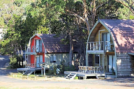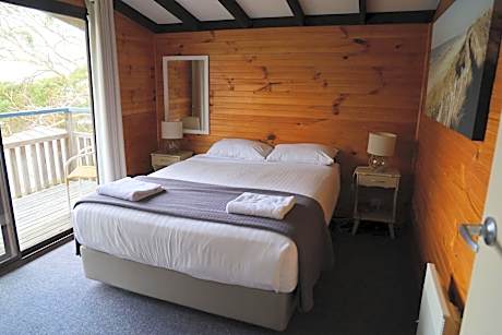 Bicheno by the Bay offers self-contained holiday cottages, most with Tasman Sea views. Surrounded by native bushland, Bicheno by the Bay Tasmania is a 3-minute walk from Bicheno town center, the Blowhole, Whalers Lookout and the Foreshore Footway. Each of the free-standing timber bungalows has their own kitchen, bathroom, separate bedrooms and lounge room. All have a private terrace off the lounge room and main bedroom. The motel-style rooms include electric blankets, heating, flat-screen TV and DVD player. Each has a spacious modern bathroom with shower, plus a private terrace. Facilities include an outdoor pool, full-size tennis court and a children's playground.