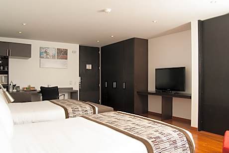 Este hotel de negocios de 22 habitaciones, inaugurado en 2010, goza de una ubicación ideal en el vibrante distrito norte de Bogotá, cerca de excelentes tiendas, restaurantes y lugares de entretenimiento, y justo enfrente del corredor ecológico Viceroy. A solo 25 minutos del Aeropuerto Internacional El Dorado, el hotel ofrece un cómodo acceso a los viajeros. Inspirado en leyendas del jazz, este moderno hotel está rodeado de centros comerciales de lujo, como el Andean Trade Center, sede de marcas de renombre mundial. Los huéspedes disfrutan de recepción 24 horas, caja fuerte, guardarropa, ascensor, bar, restaurante, wifi, servicio de habitaciones y de lavandería, guardabicicletas y aparcamiento. Un club infantil ofrece entretenimiento para los más pequeños. Las espaciosas habitaciones de 45 metros cuadrados cuentan con baño privado con bañera, ducha y secador de pelo, además de televisores LCD de 42 pulgadas, teléfonos, radios, equipos de música, camas king size, escritorios de 2 metros, wifi de alta velocidad, minibar y caja fuerte. Cada habitación también incluye un balcón con vistas al parque y una pequeña cocina equipada con nevera/congelador, microondas y set de té y café. También se proporciona plancha, tabla de planchar y calefacción con control individual. Los huéspedes pueden disfrutar de masajes relajantes y paquetes de spa especializados (con cargo adicional) o mantenerse en forma en el gimnasio del hotel (con cargo adicional). El desayuno buffet está incluido, mientras que el almuerzo y la cena están disponibles a la carta.