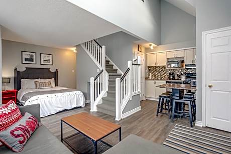 Just a 19-minute walk from Northwinds Beach and 0.7 miles from Blue Mountain Resort, Blue Mountain Studio Loft at North Creek Resort features accommodations in Blue Mountains, with a garden and barbecue facilities. This property offers access to a patio and free private parking. The accommodation features free Wifi throughout the property, as well as a terrace and a family-friendly restaurant. Featuring a balcony and mountain views, the spacious condo hotel includes 2 bedrooms, a living room, cable flat-screen TV, an equipped kitchen, and 2 bathrooms with a hot tub and a bath. Towels and bed linen are offered in the condo hotel. There's also a seating area and a fireplace. The condo hotel also provides an outdoor swimming pool and a hot tub for guests to relax in. A ski equipment rental service, ski-to-door access, and a ski pass sales point are all available at Blue Mountain Studio Loft at North Creek Resort, and guests can go skiing in the surrounding area. Plunge! Aquatic Centre is 1.2 miles from the accommodation, while Craigleith Provincial Park is 2.9 miles from the property.
