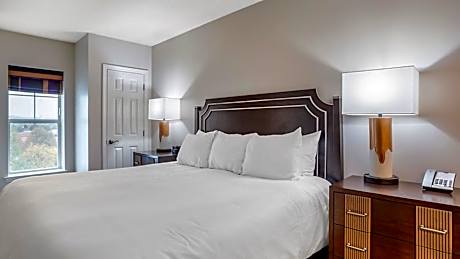 This property in Hershey, Pennsylvania is within a 15-minute walk of Hersheypark Theme Park. It offers suites with a kitchen as well as a washer and tumble dryer. Each cool-colored suite at The Suites at Hershey is equipped with cable TV, a DVD player, and free Wi-Fi. The kitchen is complete with an oven, full-size refrigerator, and a dishwasher. Guests can swim in the outdoor pool or work out at the on-site gym. A playground and a gazebo with barbeque facilities are located on the property. Hotel Hershey Golf Course is 1 mile from the Hershey Suites. Hershey Chocolate World Tours is a 5-minute drive from the property.