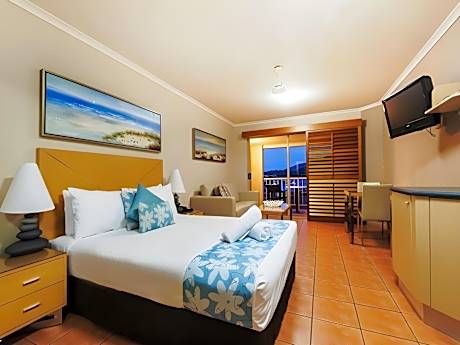 Just 984 feet from Airlie Beach town center, this award-winning resort offers air-conditioned apartments, each with self-catering facilities and a private balcony offering views of the Coral Sea. Boathaven Spa Resort features a 25-yard swimming lagoon with waterfall and a large heated spa pool. Guests have free access to BBQ facilities and the tour desk. Each of these beautifully appointed apartments includes cable TV, ceiling fans, DVD player and a plasma-screen TV. Some apartments have a hot tub on the balcony. On-site laundry facilities are available. Boathaven Spa Resort is located 5.6 mi from Shute Harbor. Whitsunday Coast Airport is a 40-minute drive away. Free covered car parking is provided. Wi-Fi access is available for a small extra charge.