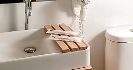 - Mampara acrílica entre huéspedes y personal en zonas de contacto principales