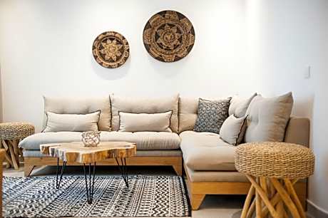 Located in Hanioti, a 3-minute walk from Hanioti Beach, Bohemia Luxury Living provides accommodations with free WiFi and free private parking. Some units at the property feature a balcony with a sea view. At the inn all rooms have air conditioning, a seating area, a flat-screen TV with satellite channels, a safety deposit box and a private bathroom with a shower, free toiletries and a hairdryer. Rooms include a coffee machine, while selected rooms will provide you with a terrace and others also have city views. All guest rooms have a desk. Buffet and vegetarian breakfast options are available every morning at Bohemia Luxury Living. The accommodation offers a hot tub. Pefkohori Beach is a 15-minute walk from Bohemia Luxury Living. Thessaloniki Airport is 57 miles away.