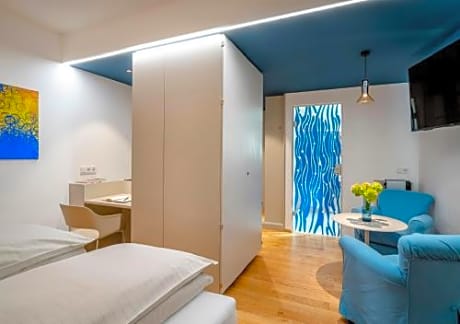 Only a 5-minute walk from the exhibition center, this 4-star design hotel is located in the center of Wels. It offers a rooftop seasonal outdoor pool, free Wi-Fi, and free use of the mini-bar. On the rooftop, guests of Boutique Hotel Hauser can use a sauna and a fitness room, and relax on the sun terraces overlooking the city. Hotel Hauser’s rooms feature a tea/coffee maker, a mini-bar, cable TV, and a bathroom with hairdryer. The daily breakfast buffet includes seasonal specialties and many regional, homemade and organic products. Drinks and snacks are available in the stylish Edi’s Bar, which includes a fireplace lounge. An underground car park is 66 feet away. Guests receive discounted tickets at the reception.