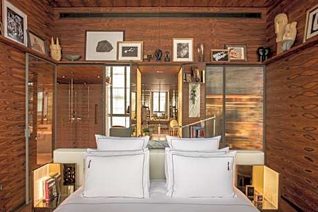 Decorated with works of art, this room is composed of 2 communicating rooms. It features 2 bathrooms with bath and shower.