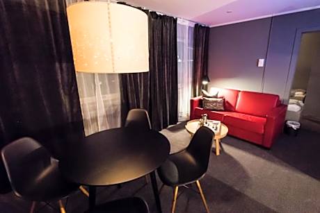 This family room features a private bathroom, heating and city views. The unit offers 4 beds.