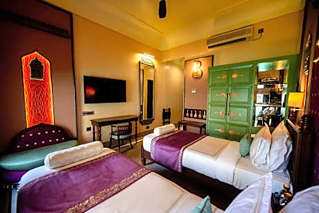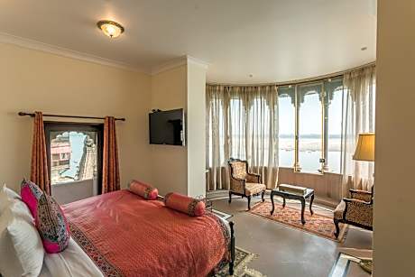 Additional benefits include: - Pickup & Drop by boat to and from Mahishasura /Assi Ghat with on board refreshments at check-in / out - Complimentary one fill of mini-bar during the stay. - Complimentary ironing of 2 pcs of clothing in each stay. - Evening high tea at Darbhanga Dining. - WiFi in 2 devices. - Evening Aarti at Dashashwamedh Ghat by shared boat along with a short ride up to Manikarnika and back. - Complimentary sharing shuttle boat pick-ups and drops daily as per the time table.