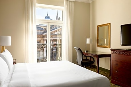 Set within a 5-minute walk from Grand Place and Manneken Pis, and a 10-minute walk from Brussels Central Train Station, Brussels Marriott Hotel offers air-conditioned rooms and a fitness center. There is an open-kitchen restaurant and private parking facilities are available. Rooms at the Brussels Marriott Hotel are equipped with satellite TV, coffee and tea making facilities and a private bathroom with a bath or shower depending on your room category. A large breakfast buffet with hot and cold dishes is available in the morning. Guests can also enjoy a selection of traditional Belgian cuisine with a twist at Rotisse. The Brussels Marriott Hotel is only 164 feet from Bourse Metro Station. Rue Neuve shopping street can be found 2789 feet from the hotel. Brussels Airport is 9.6 mi away.
