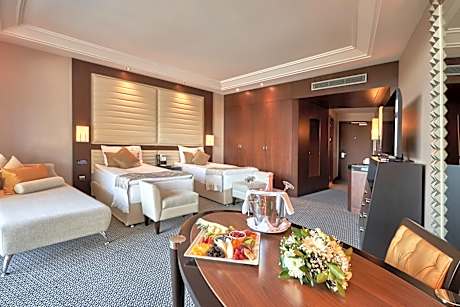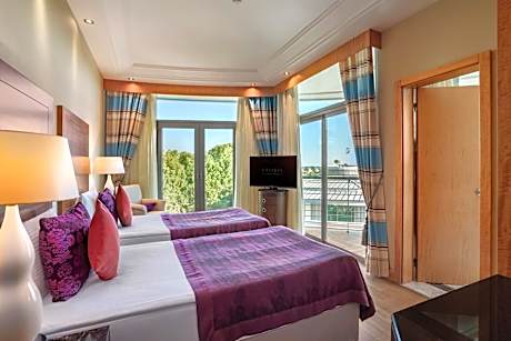 Enclavado en el corazón de Belek, Antalya, Calista Luxury Resort ofrece la combinación perfecta de lujo, confort y hospitalidad de primera clase. Reconocido por su galardonada arquitectura, el resort combina a la perfección diseño moderno con belleza natural, creando un remanso de paz en la impresionante costa mediterránea. Rodeado de frondosos pinares y ubicado junto a una prístina playa privada de arena, ofrece impresionantes vistas al mar y una atmósfera de serenidad. Calista Luxury Resort cuenta con una variedad de elegantes alojamientos, desde elegantes habitaciones hasta lujosas villas, algunas con piscina privada y servicios exclusivos. Cada habitación está diseñada con comodidades modernas, amplios interiores e impresionantes vistas al jardín, a la piscina o al mar, lo que garantiza una estancia verdaderamente relajante. Los huéspedes pueden embarcarse en un viaje culinario a través de ocho excepcionales restaurantes, cada uno con una experiencia gastronómica única. El restaurante principal, Bellum, sirve un bufé internacional con selecciones gourmet, mientras que Timo deleita con auténtica cocina italiana y Sakura presenta exquisitos sabores asiáticos. Una variedad de bares y salones ofrecen el entorno perfecto para disfrutar de bebidas premium, cócteles de autor y entretenimiento en vivo. Para quienes buscan relajación y aventura, el resort cuenta con múltiples piscinas, un emocionante parque acuático y una piscina cubierta climatizada. El Callos Spa es un santuario de bienestar que ofrece tratamientos rejuvenecedores, baño turco y un gimnasio de última generación. Los amantes del deporte pueden disfrutar de las canchas de tenis, las instalaciones para deportes acuáticos y el entretenimiento diario, incluyendo actuaciones en vivo. Ideal para familias y eventos especiales, Calista Luxury Resort ofrece un club infantil, actividades para toda la familia y servicio de niñera (con cargo), lo que garantiza una estancia sin estrés para los padres. El resort también es un destino ideal para bodas, conferencias y celebraciones, con modernas salas de reuniones y elegantes espacios para eventos diseñados para cada ocasión. Cada detalle en Calista Luxury Resort está diseñado para crear una experiencia inolvidable de lujo y relajación. Ya sea que busque tranquilidad, aventura o una escapada familiar memorable, este exclusivo refugio promete una estancia llena de elegancia, comodidad y un servicio excepcional.