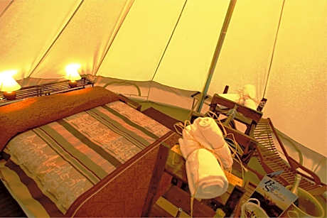 This tent has a shared bathroom and a private entrance. The well-equipped kitchenette features a stovetop, a refrigerator and kitchenware. The unit offers 3 beds.