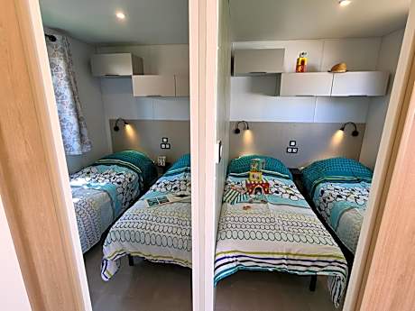 This mobile home is consisted of of 1 living room, 3 separate bedrooms and 1 bathroom with a shower. The mobile home's kitchen, which has a refrigerator, is available for cooking and storing food. This mobile home features a tea and coffee maker, a seating area, a TV and a terrace. The unit offers 5 beds.