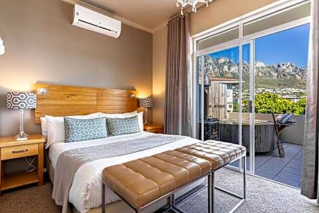 Ubicado en una amplia finca privada con vistas a Camps Bay y al océano Atlántico, este hotel boutique combina impresionantes vistas con instalaciones de primera clase. Enclavado en la cordillera de los Doce Apóstoles, el Camps Bay Retreat Hotel es la opción ideal para quienes deseen explorar Ciudad del Cabo con estilo. Despierte con el sonido de las olas. Tanto si se aloja en la antigua mansión como en el moderno anexo, las vistas al mar están garantizadas en todo momento. La privacidad y la tranquilidad están garantizadas en Camps Bay Retreat gracias al reducido número de habitaciones y al entorno natural. Pasee por la finca y descubra cascadas y arroyos de montaña. Si lo prefiere, puede darse un baño en la piscina exterior o tomar el sol en su balcón. ¿Por qué no disfrutar de una deliciosa comida en la terraza? Mientras disfruta de las especialidades de temporada, el atento personal puede organizar el alquiler de un coche, reservar diversas excursiones de un día o encargarse de que le laven la ropa antes de su próximo partido de pádel. El servicio de cobertura complementa aún más su estancia. Se puede acceder a las habitaciones Deck a través de un puente giratorio e impresionan con su moderno mobiliario, fachada de cristal y diseño diáfano. Disfrute de un baño en su bañera independiente o admire las vistas al mar desde uno de sus balcones. Las habitaciones de la mansión lucen un interior más tradicional y elegantes muebles antiguos.