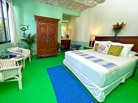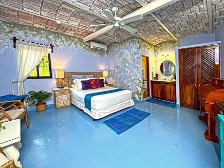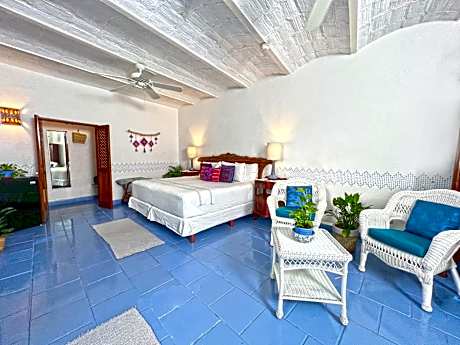 This room has direct access from the garden and includes a private full bathroom with walk-in shower, walk-in closet, a king size bed and vanity tables.The room has a private terrace.