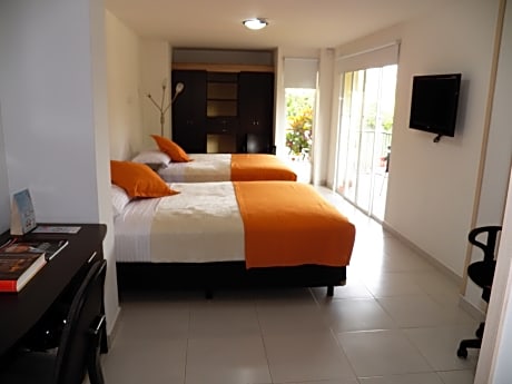 Located south of Cali in the field of Pance, upscale neighborhood of the city, 1 hour from the Airport and 30 minutes from the bus station, close to shopping and financial area of Shopping Centers Garden Plaza, Palms Mall, San Joaquin, Unicentro, Holguines Trade Center, Price Smart, among others; 5 minutes from recognized universities and colleges and a few minutes of social and sports clubs. The rooms are equipped with 250 thread count linens, balcony overlooking the gardens and parkland, lighting and natural ventilation. Also the hotel has a conference room for meetings for up to 50 people with ease of audiovisual aids, food and beverage service.