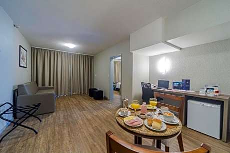 El Castelmar Hotel está situado en Florianópolis, a solo 1 km del mercado público y a 10 minutos en coche del puente Hercilio Luz, y ofrece piscina al aire libre, bar y conexión WiFi gratuita. El establecimiento admite mascotas. Todas las habitaciones del Castelmar disponen de aire acondicionado, TV por cable, minibar y baño privado con artículos de aseo gratuitos. El establecimiento también cuenta con un gimnasio bien equipado y una recepción abierta las 24 horas. El centro de convenciones del Castelmar Hotel cuenta con amplias salas de reuniones en una superficie total de 4,6 m². También se ofrecen equipos y asistencia personal. Este hotel de 3 estrellas se encuentra a poca distancia en coche de la estación de autobuses de la ciudad y de otros lugares de interés populares, como el parque Benjamin Constant. El aeropuerto internacional Hercílio Luz está a 13 km del establecimiento. El Hotel Castelmar está situado en el centro de Florianópolis, con fácil acceso a través del Puente Hercílio Luz, que fue recientemente reabierto y revitalizado y es la principal atracción turística de la ciudad. El Hotel está a 1 km del Mercado Público, Centro Histórico y Estación de Autobuses. El Aeropuerto Internacional Hercílio Luz está a 18 km. Disponemos de Wi-Fi gratuito en todas las áreas del Hotel y estacionamiento privado (ver precio). En Castelmar, su mascota también es bienvenida (ver valores y políticas). Todas nuestras habitaciones cuentan con aire acondicionado, TV por cable y minibar. El Hotel cuenta con recepción 24 horas, gimnasio y el centro de convenciones más grande de la región central de Florianópolis.
