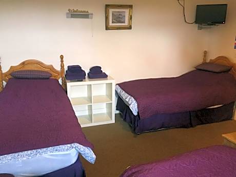 This room has 3 single beds, en suite shower and toilet, fresh towels ,TV, hairdryer and a hospitality tray. The beds are zip and clip and can be turned into a super-king bed and a single by special request only.