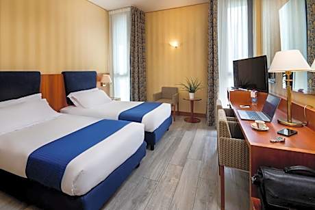 Hotel Parma & Congressi is a large hotel with outdoor seasonal swimming pool, sauna and gym. Located just off the Tangenziale Nord ring road, it is just 10 minutes’ drive from Parma. Parking and Wi-Fi are free. The Parma & Congressi offers a 4-star superior service. All rooms come with air conditioning, free internet access, and satellite TV, and some feature a hydromassage bath or shower. The restaurant serves an excellent à-la-carte menu of traditional Emilian cuisine, made using top-quality ingredients. Breakfast is a generous buffet.