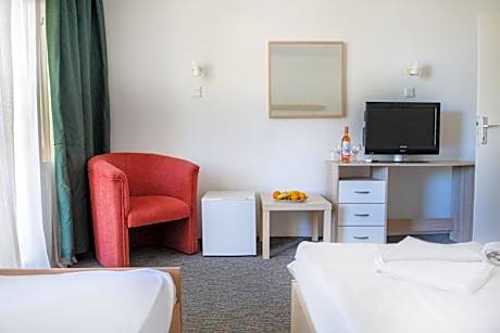 Next to the dock at Lake Balaton, Hotel Napfény is a 5-minute walk from Siofok's center and the train and bus station. It offers rooms with attached bathroom with a TV, fridge and balcony overlooking the beach. Free private parking is available on site. Free WiFi is available in all areas. All the rooms are fitted with carpet. The Beach Club, an entertainment center with numerous bars and night clubs, is 492 feet away. The Galerius Spa with various wellness treatments is 2.8 mi from the Napfény.