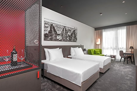 Located within the Capital Plaza Complex in Podgorica, Crowne Plaza Podgorica offers modernly furnished rooms, a restaurant and a bar 1.2 mi from the city center. Free WiFi access is provided in all areas. All air-conditioned units are furnished in an eclectic style and feature a flat-screen satellite TV, a mini-bar, coffee and tea making facilities and a safe. Private bathrooms include a shower, a hairdryer and branded toiletries. You will find a 24-hour front desk and meeting and conference facilities at the property. The Living Room Lounge and Dining offers international fare in a relaxed atmosphere, while the exclusive Signature Lounge is located on the 5th floor offering views of the city and complimentary snacks and drinks for guests of the Signature Floor and suites. The Capital Plaza Complex features numerous amenities such as spa and wellness center, fitness center, a shopping center, a beauty salon and a children’s playroom. Podgorica Airport is 7.5 mi from the property, while the The Central Railway and Bus Station are 1.9 mi away.